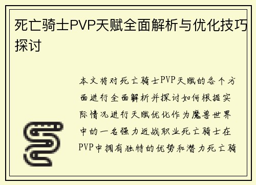 死亡骑士PVP天赋全面解析与优化技巧探讨